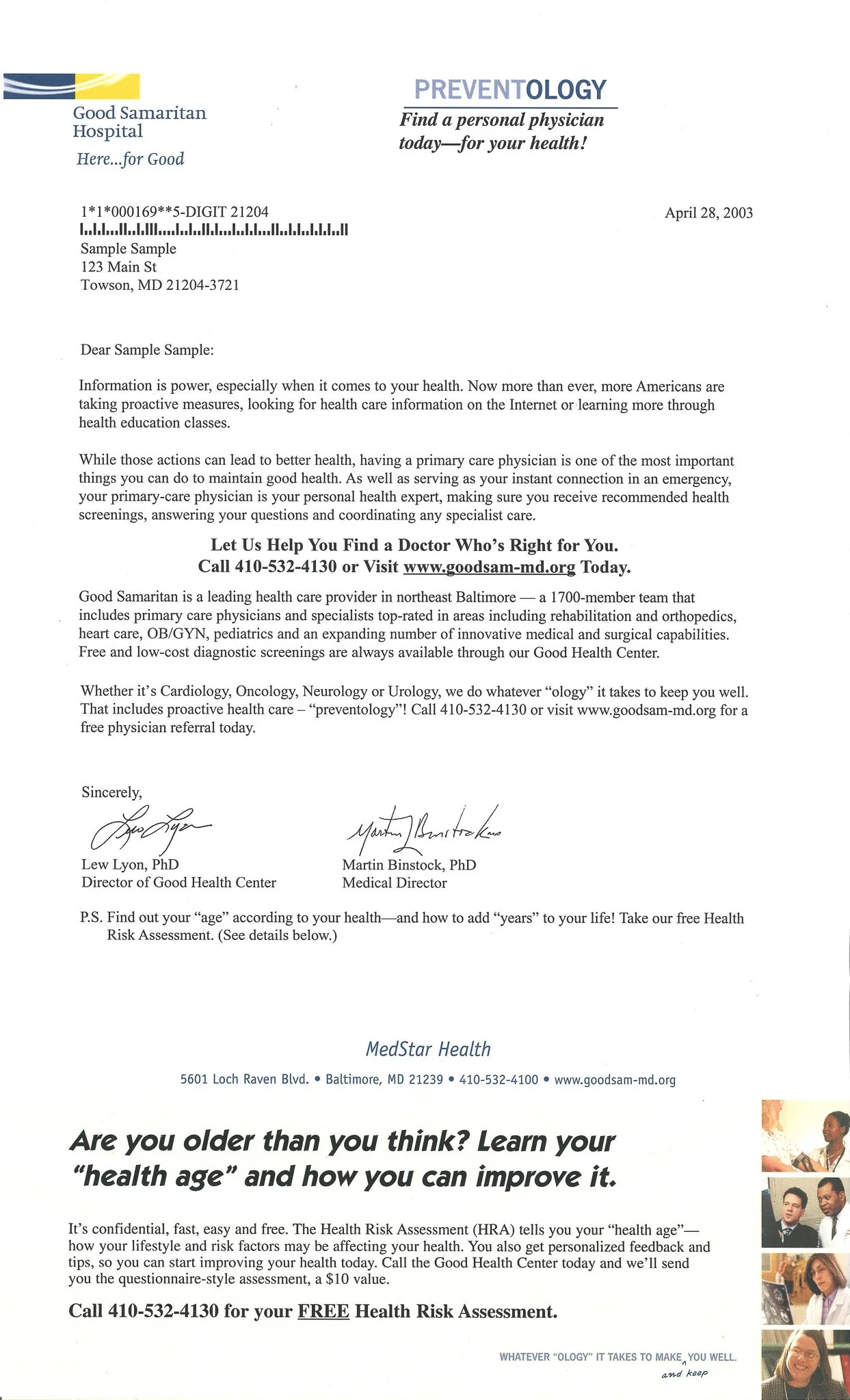 An ounce of prevention is worth, well, you get it. Umbrella concept for a variety of marketing mailers for screenings, checkups and regular physician visits.